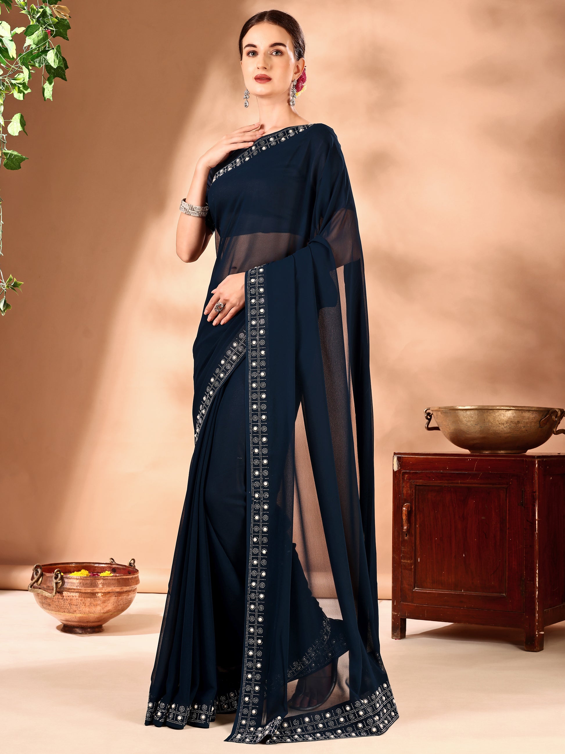 Leelavati Embellished Bollywood Chiffon Saree (Dark Blue)