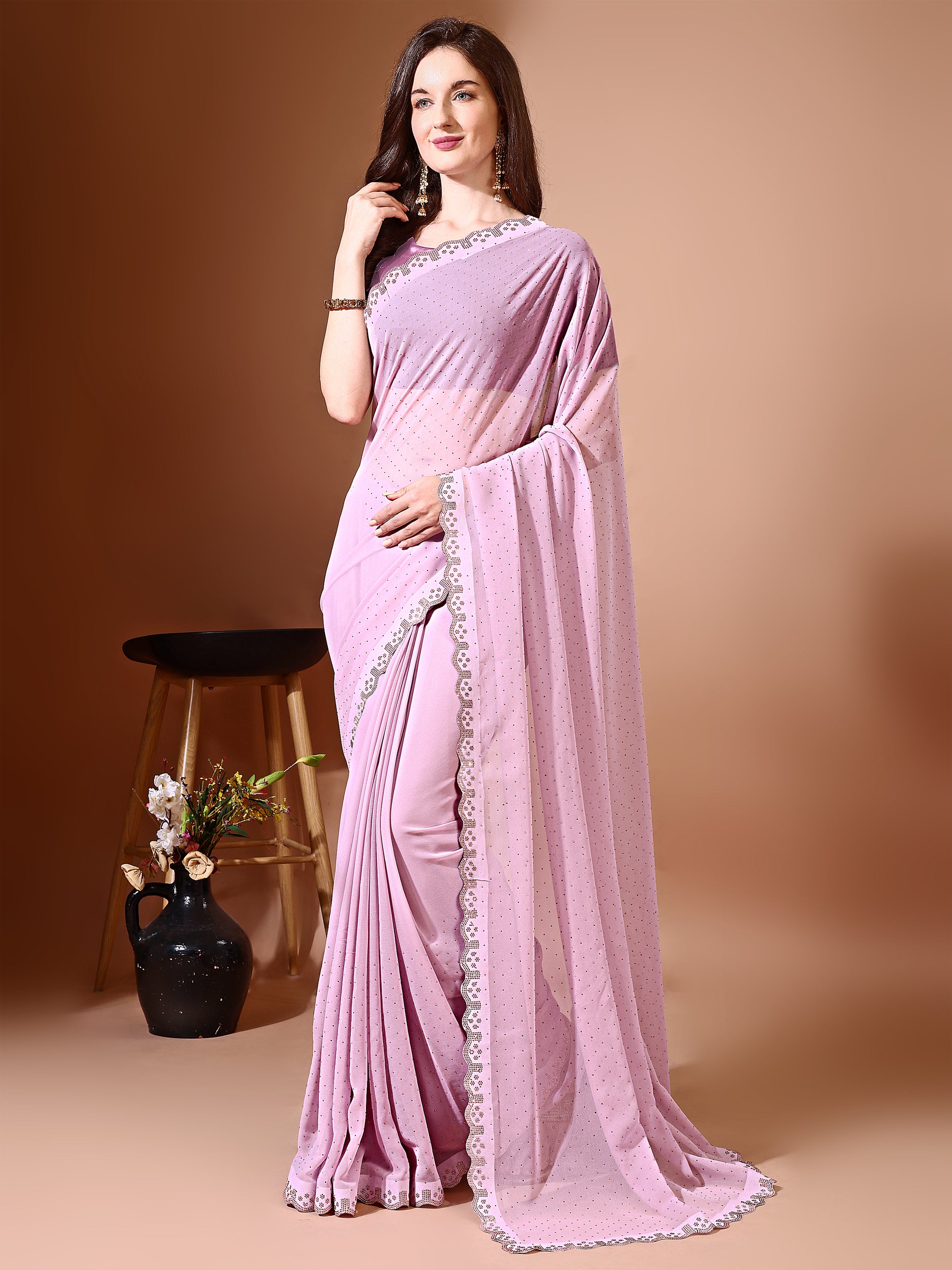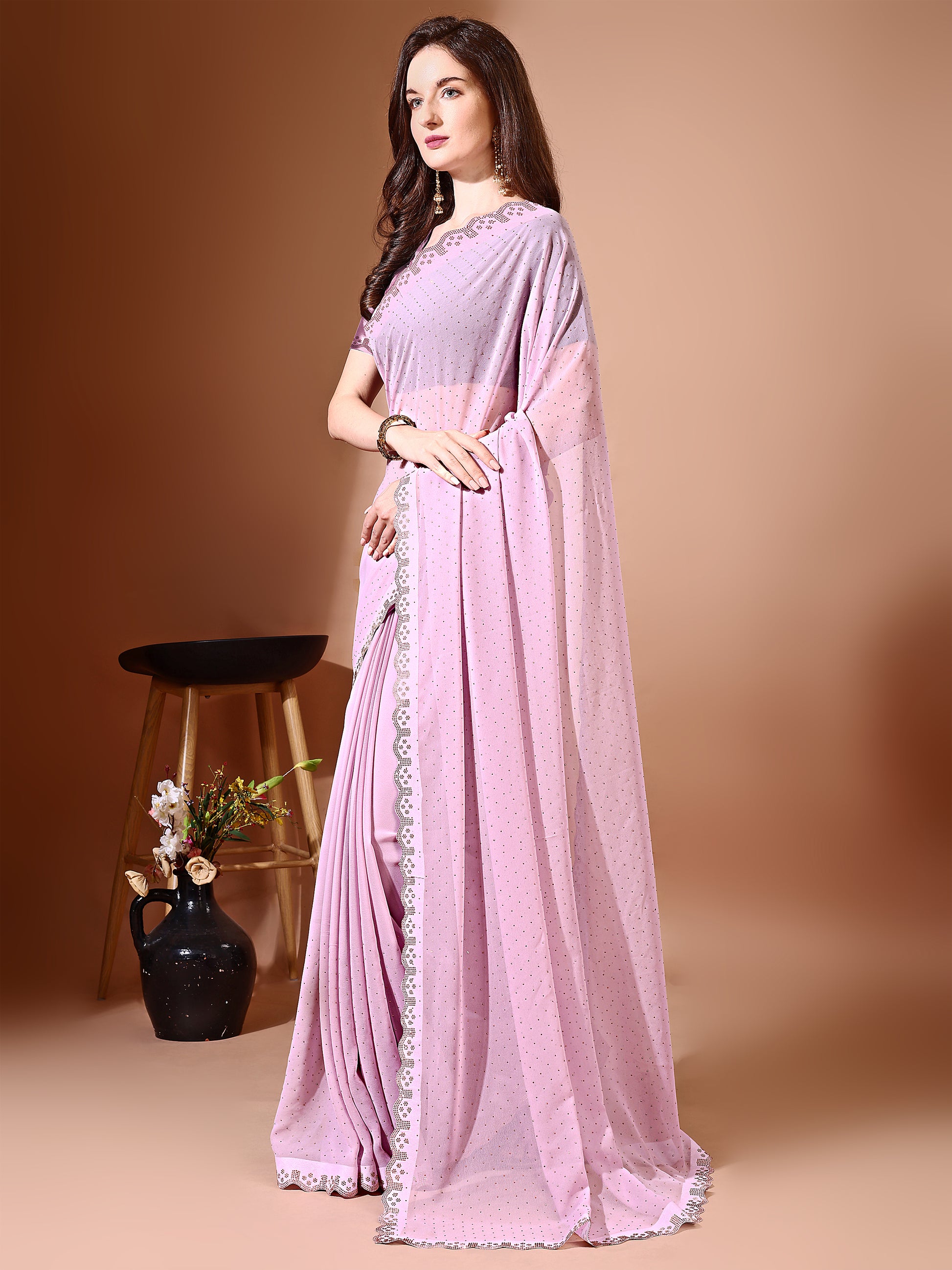 Leelavati Embellished Bollywood Chiffon Saree (Pink)