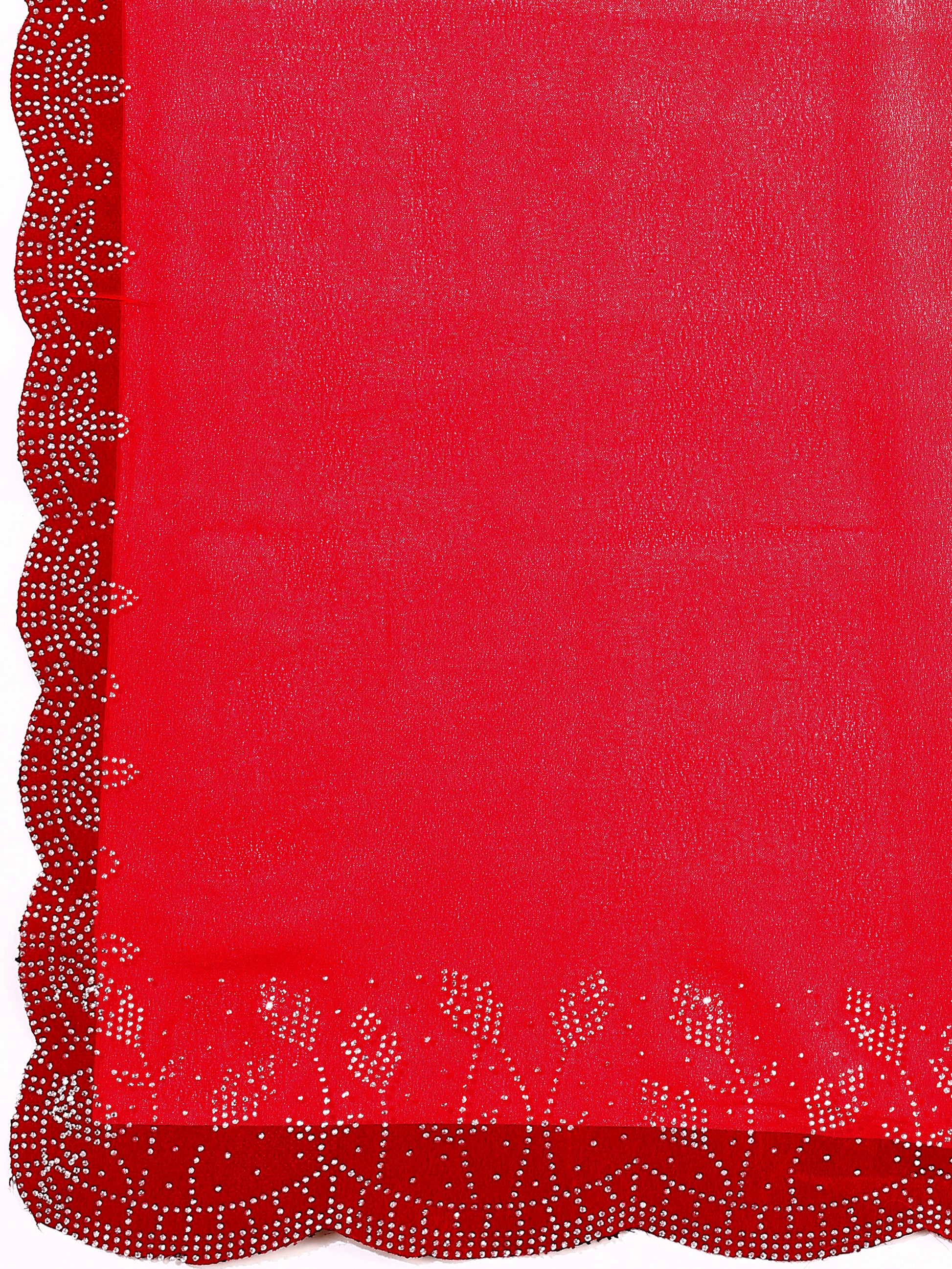 Leelavati Embellished Bollywood Chiffon Saree (Red)