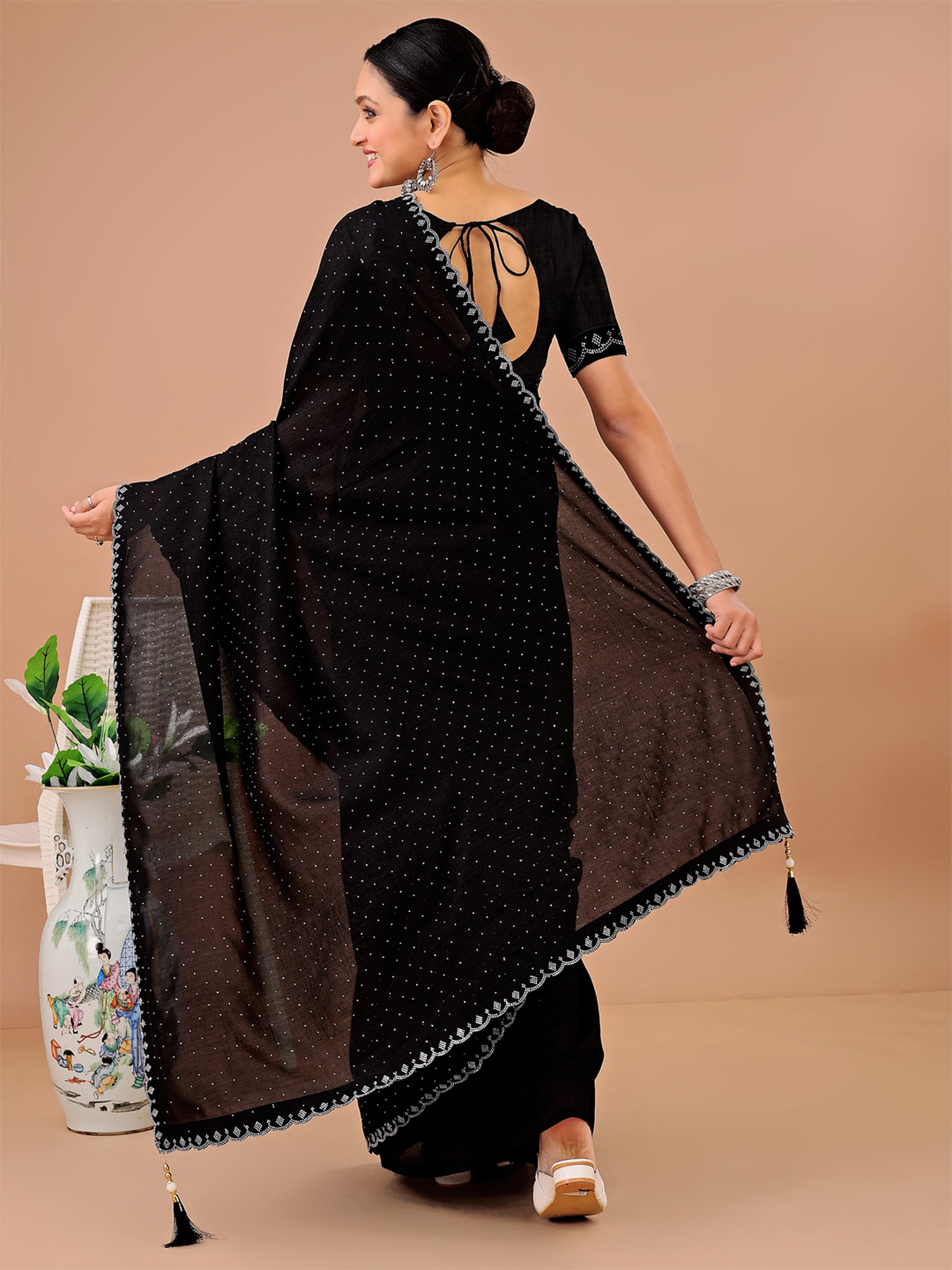 Leelavati Embellished Kanjivaram Silk Blend Saree (Black)