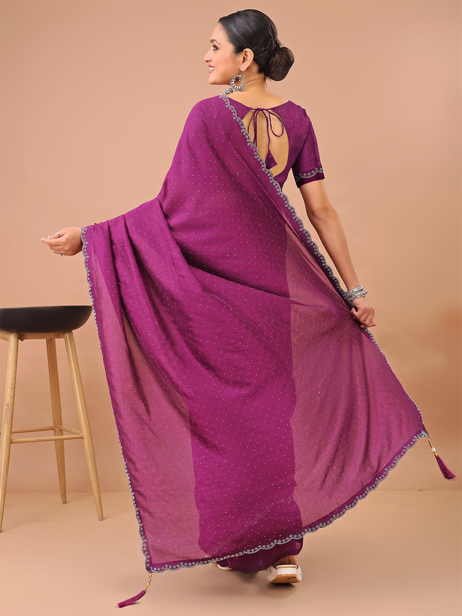 Leelavati Embellished Kanjivaram Silk Blend Saree (Purple)