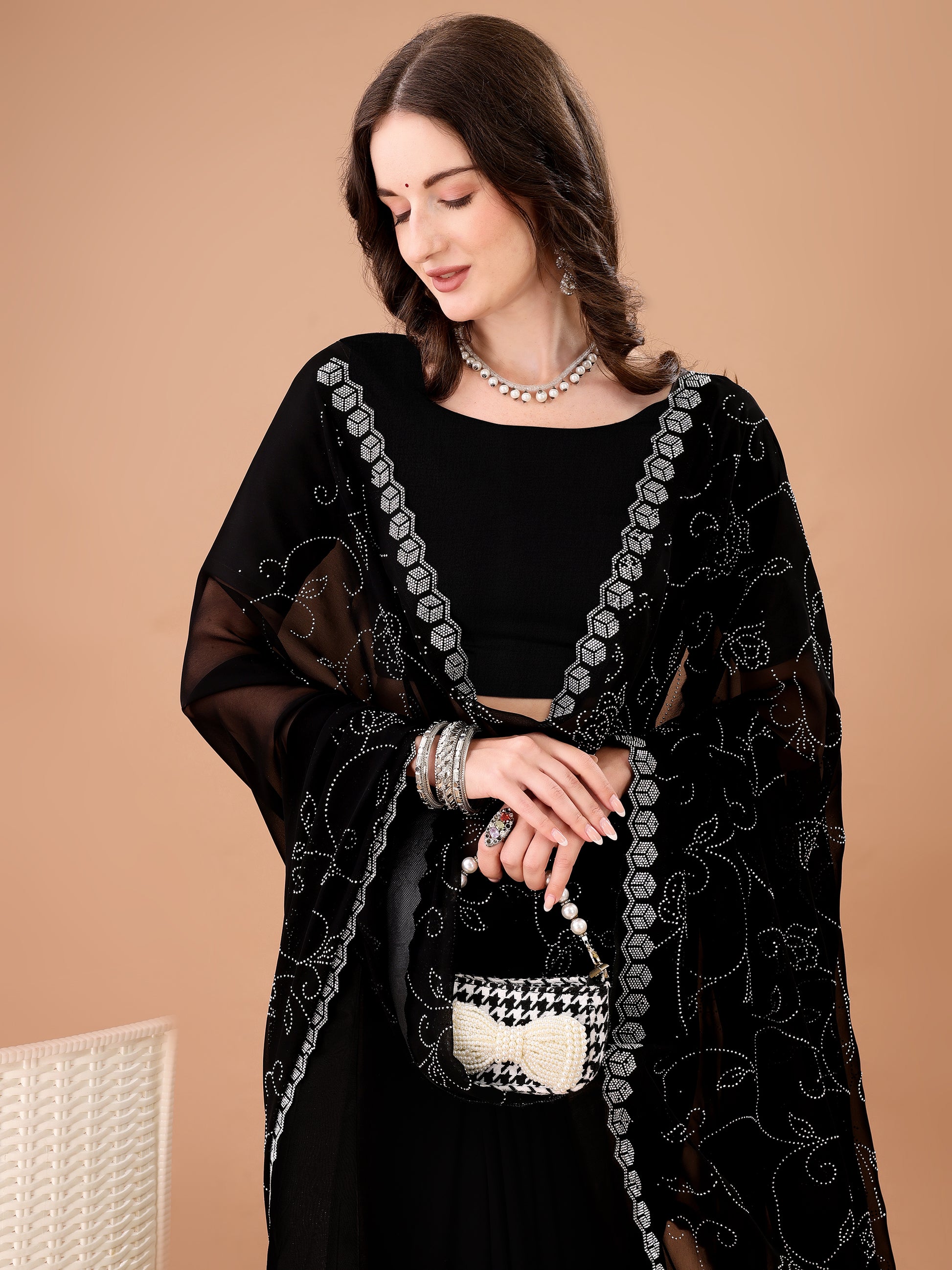 Leelavati Embroidered, Embellished Bollywood Georgette Saree (Black)