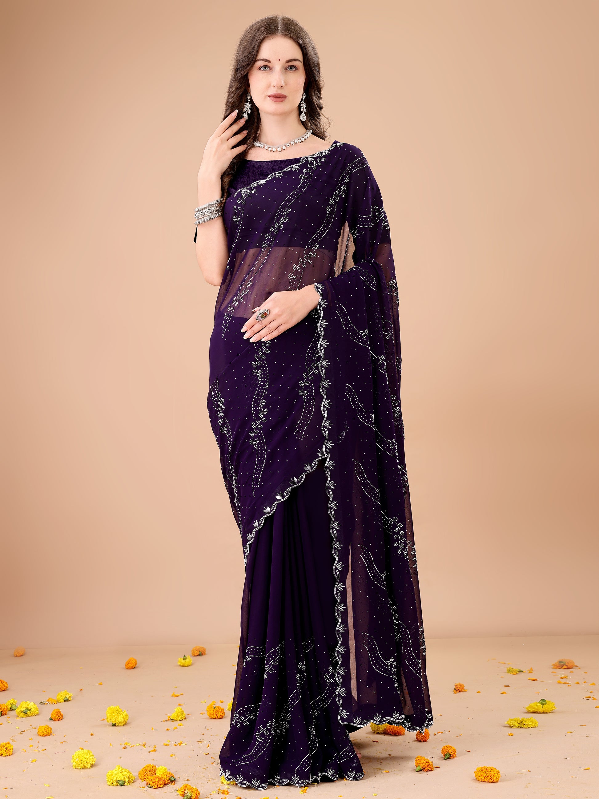 Leelavati Embroidered, Embellished Bollywood Georgette Saree (Purple)