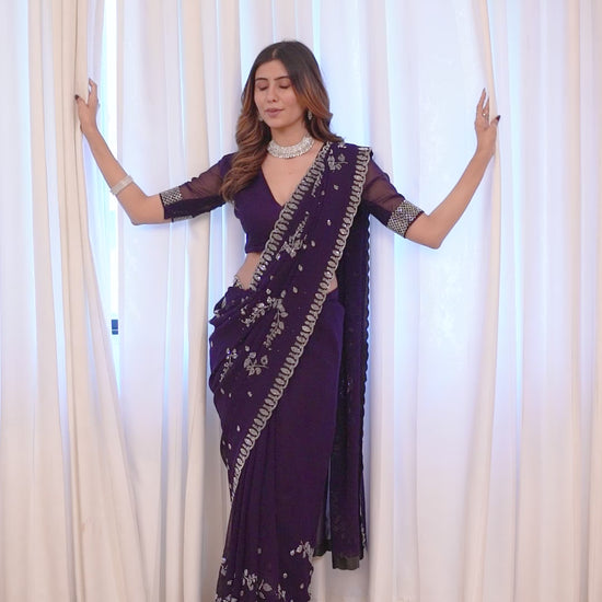 Leelavati Embroidered, Embellished Bollywood Georgette Saree (Purple)