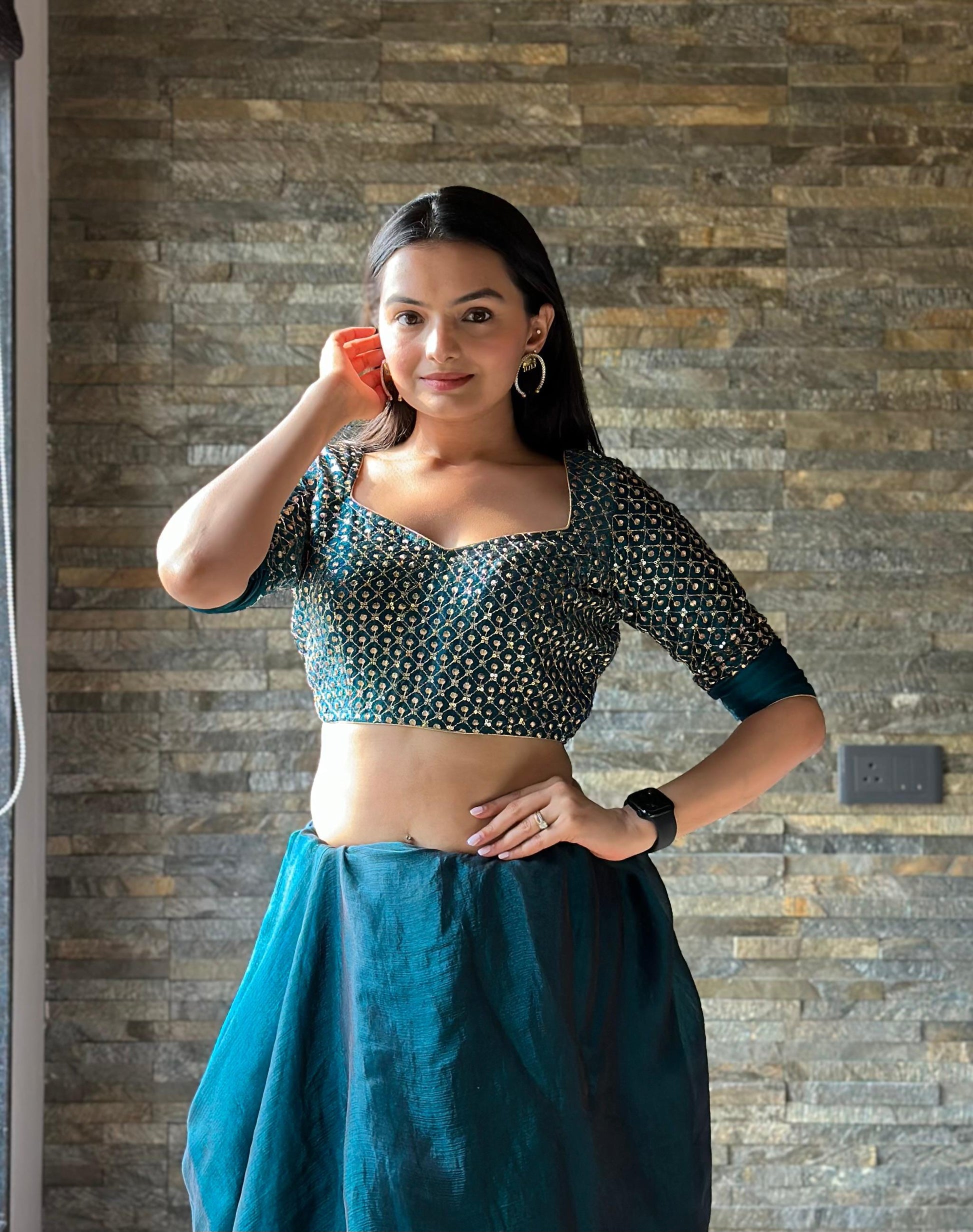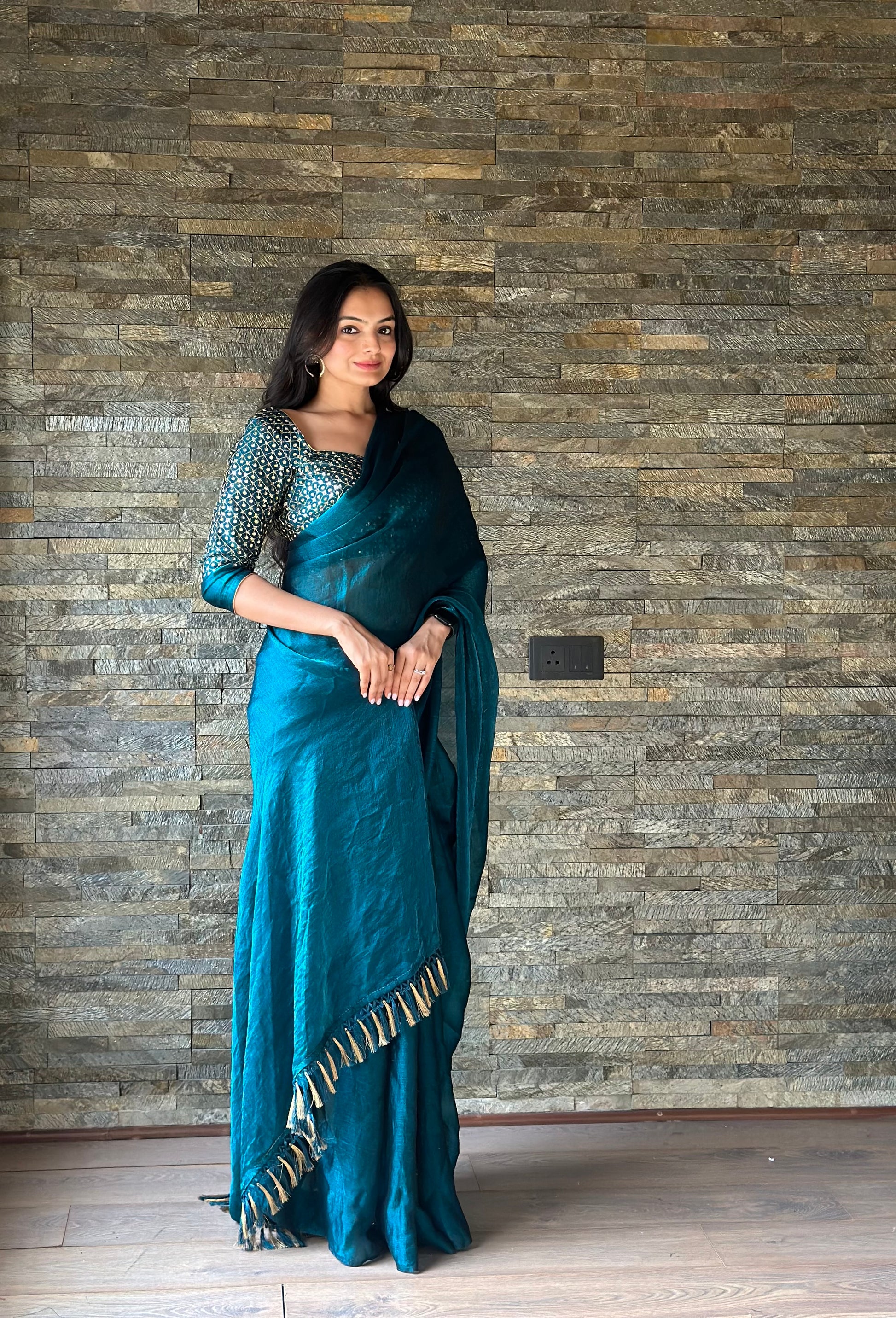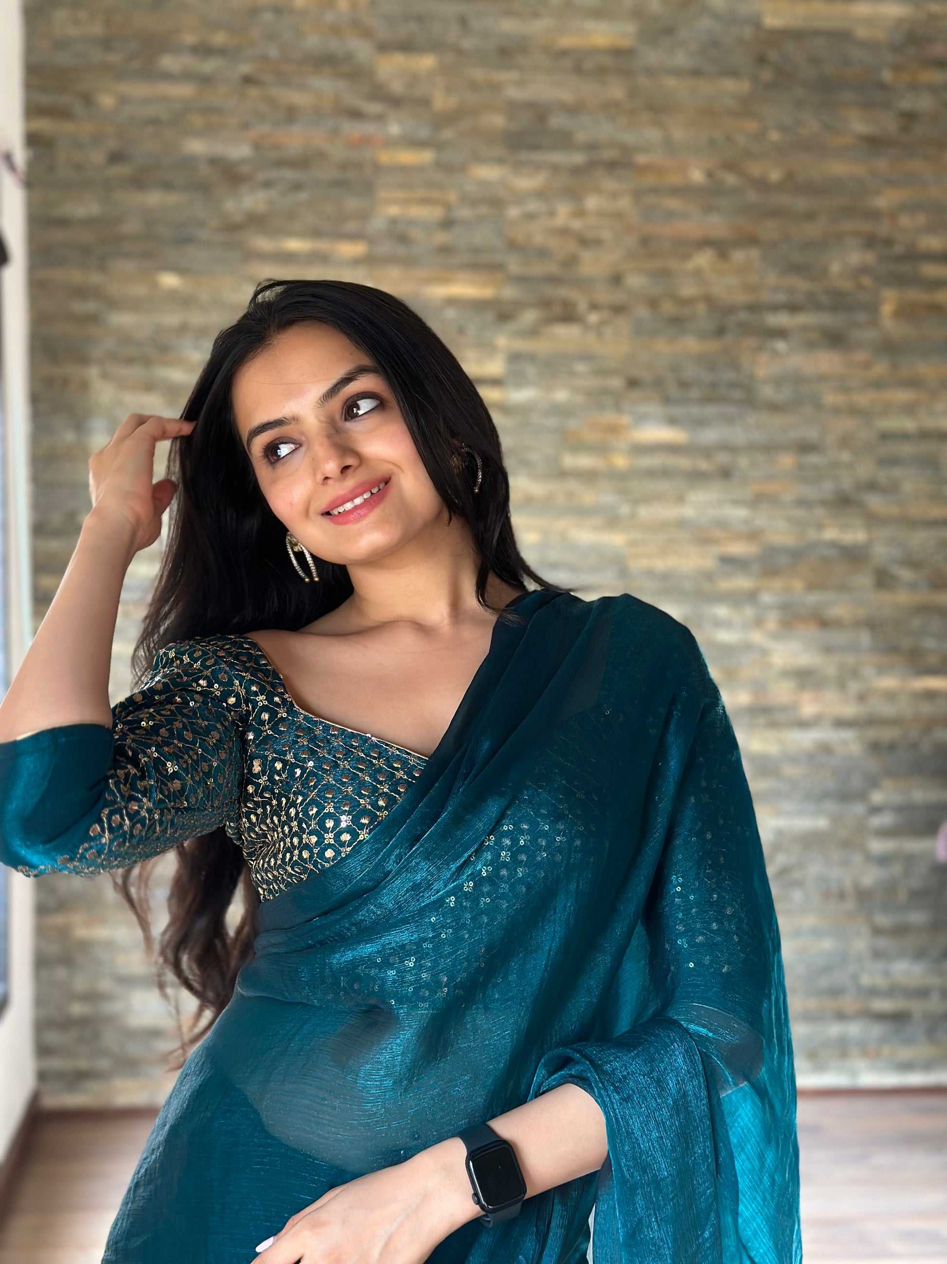 Leelavati Embroidered, Embellished Bollywood Organza Saree (Blue)