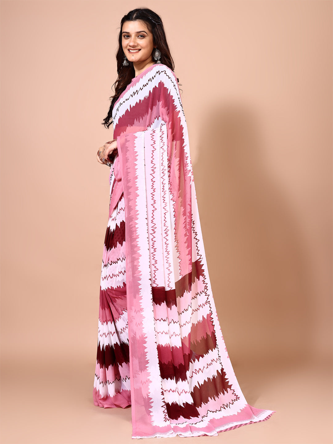 Leelavati Printed Bollywood Chiffon Saree (Pink, White)
