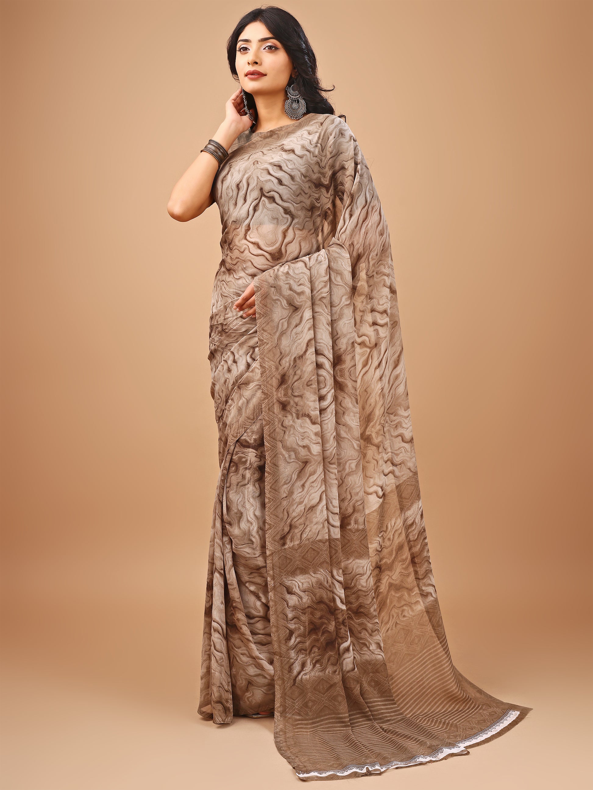 Leelavati Printed Daily Wear Chiffon Saree (Beige)