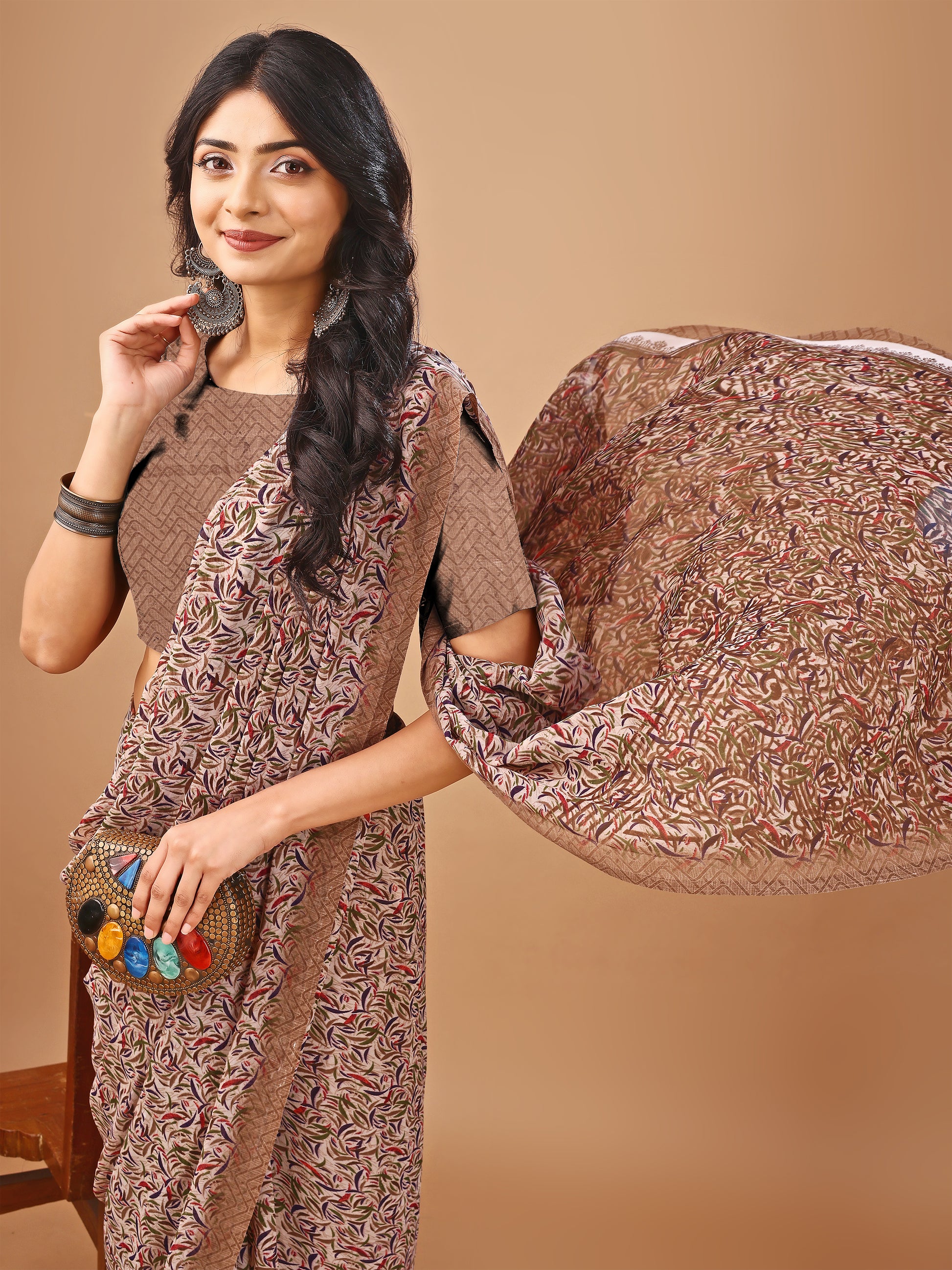 Leelavati Printed Daily Wear Chiffon Saree (Beige)