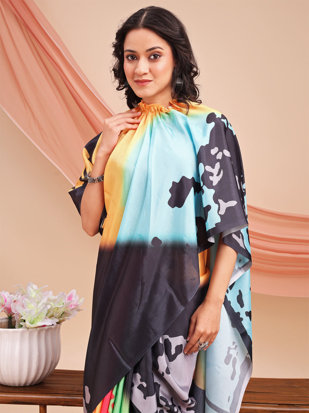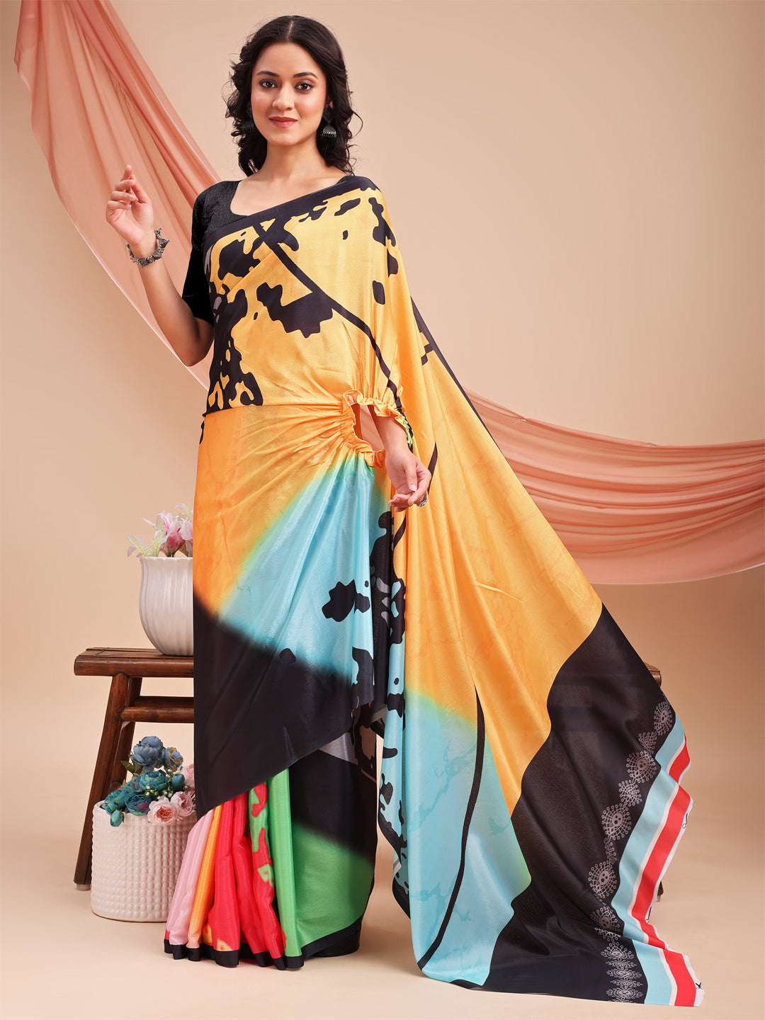 Leelavati Printed, Embellished, Embroidered Daily Wear Chiffon Saree (Black, Yellow, Multicolor)