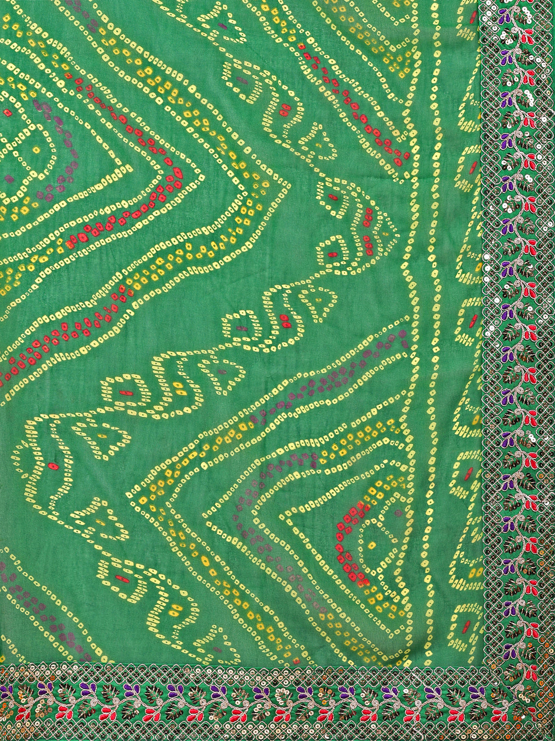 Leelavati Striped, Embroidered Bandhani Georgette Saree (Light Green)