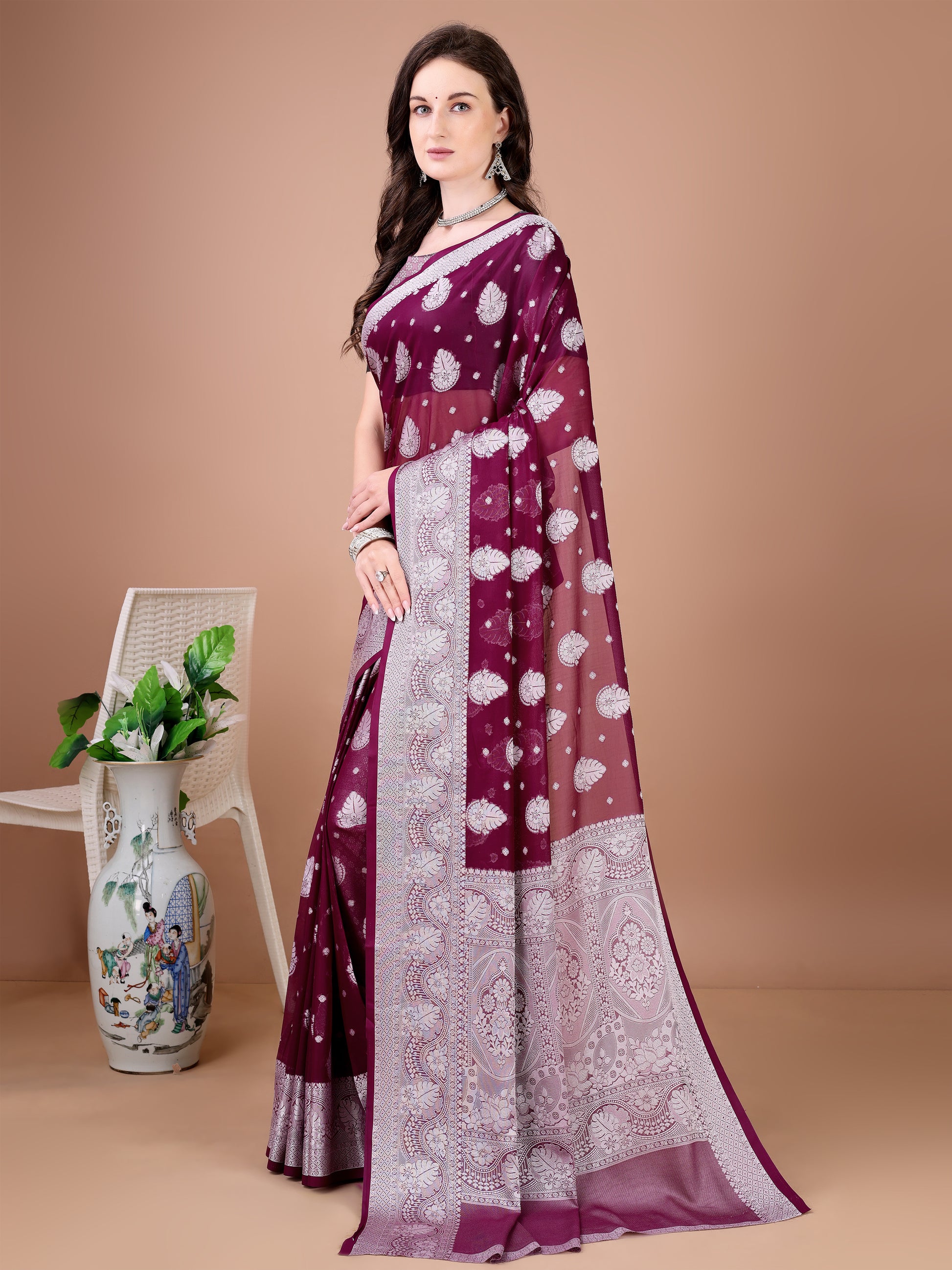 Leelavati Woven, Self Design Kanjivaram Pure Silk, Jacquard Saree (Purple)